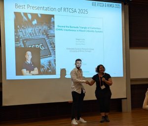 Diogo Costa, aluno do Programa Doutoral em Engenharia Eletrónica e de Computadores, foi galardoado com o prémio Best Presentation Award na última RTCSA 2025.