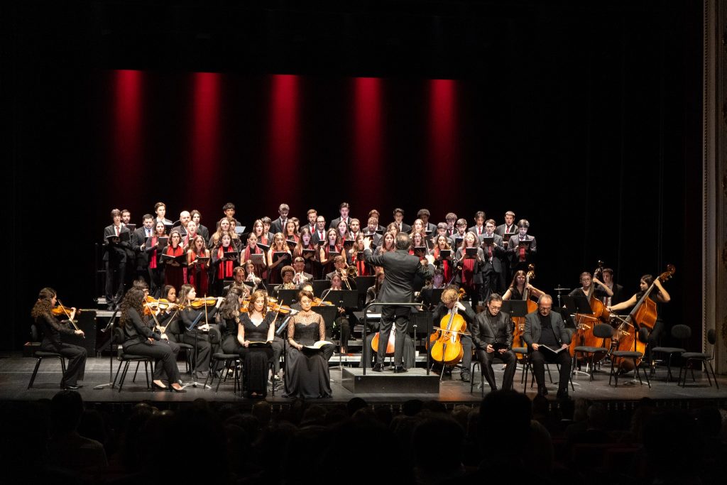 Neste espetáculo, a Orquestra da UMinho interpretou a abertura de “A Flauta Mágica” e “Exsultate, Jubilate”, de Mozart, enquanto o Coro do Departamento de Música apresenta a “Missa da Coroação”, do mesmo compositor. A direção musical esteve a cargo do maestro Vítor Matos.