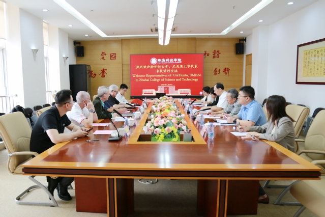 On the morning of May 10, Liu Ming, deputy secretary of the Party Committee and president of the university, met with the visiting guests. Vice President Cheng Chunmei, Dean of the School of Computer Science Liang Yanchun, Director of the International Exchange and Cooperation Office Dong Yan, Vice Dean of the School of Computer Science Li Dalin, and Deputy Director of the International Exchange and Cooperation Office Li Zi attended the discussion. At the beginning of the meeting, Liu Ming warmly welcomed the visit of the delegations of the two universities, introduced the development profile of our university, reviewed the history of cooperation with the two universities and the main achievements. Liu Ming pointed out that scientific and technological innovation is an important engine for the development of the Guangdong-Hong Kong-Macao Greater Bay Area. He hoped that under this development opportunity, our university, the University of Trento in Italy, and the University of Minho in Portugal could make full use of the good cooperation foundation in the field of computer science, further deepen inter-school exchanges and cooperation, expand the breadth of cooperation, and achieve mutual benefit and win-win results. Joao L. Monteiro said that the University of Minho and Zhuhai University of Science and Technology have a long-term and stable cooperative friendship, and hope to deepen the exchange of teachers and students, scientific research and other aspects of the two universities in the new round of cooperation, and continue to explore more opportunities for collaborative development. At the meeting, all parties also expressed the hope that this visit can be used as an opportunity to explore the establishment of a tripartite cooperation mechanism on the premise of sharing resources and complementing each other’s advantages.