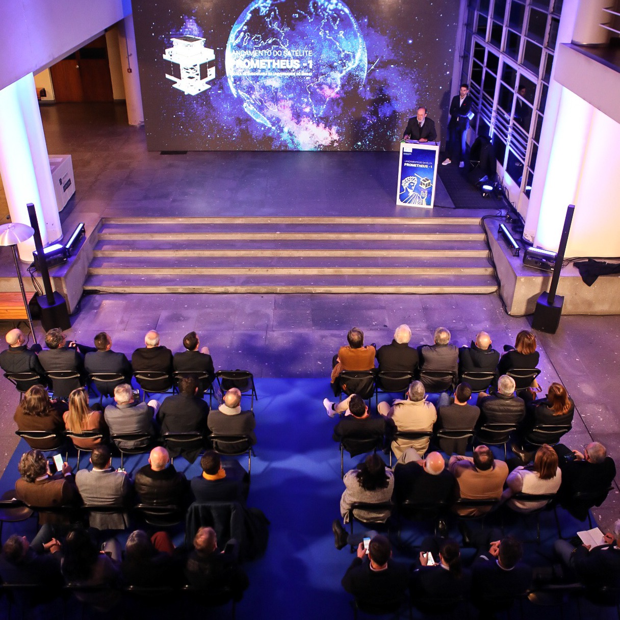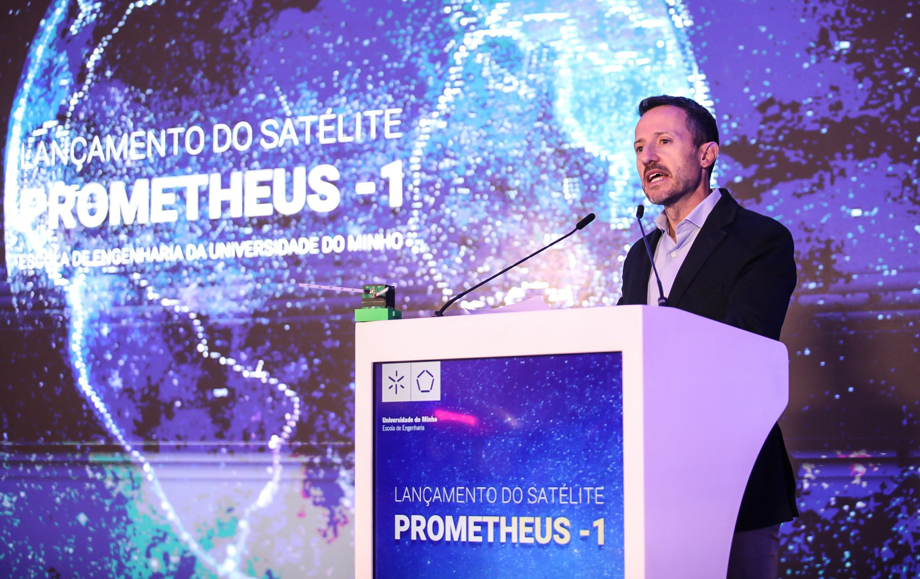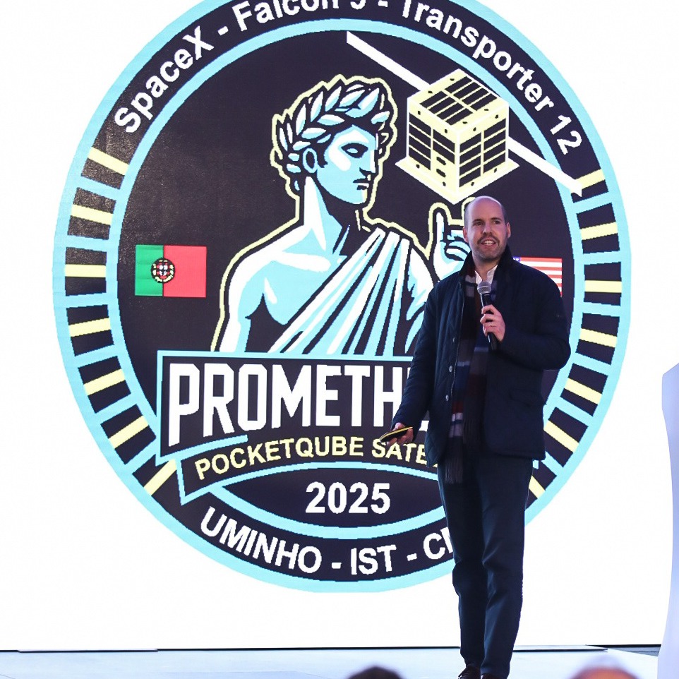The launch was accompanied by a special ceremony, which took place in the hall of building 1 of the Azurém campus in Guimarães, and can also be followed online at engium.uminho.pt/prometheus-1 . The session was welcomed by the Rector of UMinho, Rui Vieira de Castro, and the President of the School of Engineering (EEUM), Pedro Arezes. This was followed by a presentation of PROMETHEUS-1 by Professor Alexandre Ferreira da Silva, from EEUM’s Industrial Electronics Department.